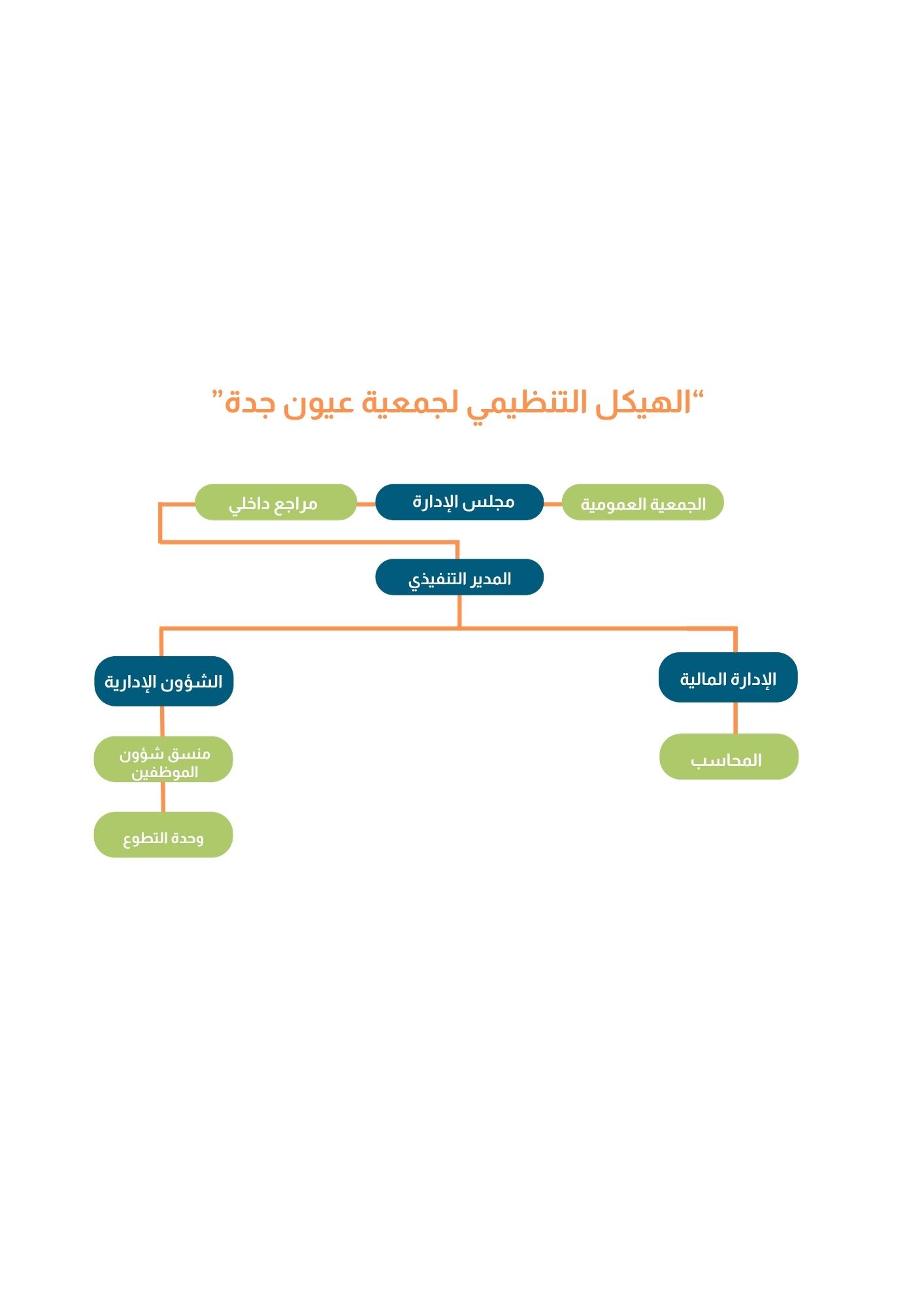 الهيكل التنظيمي يوضح التسلسل الهرمي والعلاقات التنظيمية داخل الجمعية